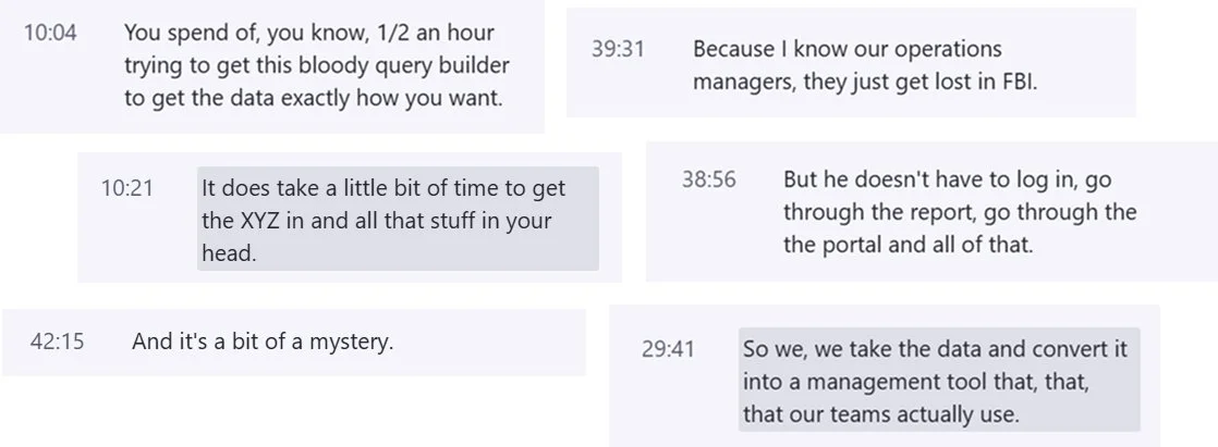 Mark’s experience revealed a broader issue: even experienced users were working around netBI, not with it. The platform technically had all the right data but not in a format or flow that aligned with users real-world goals, mental models or time constraints.